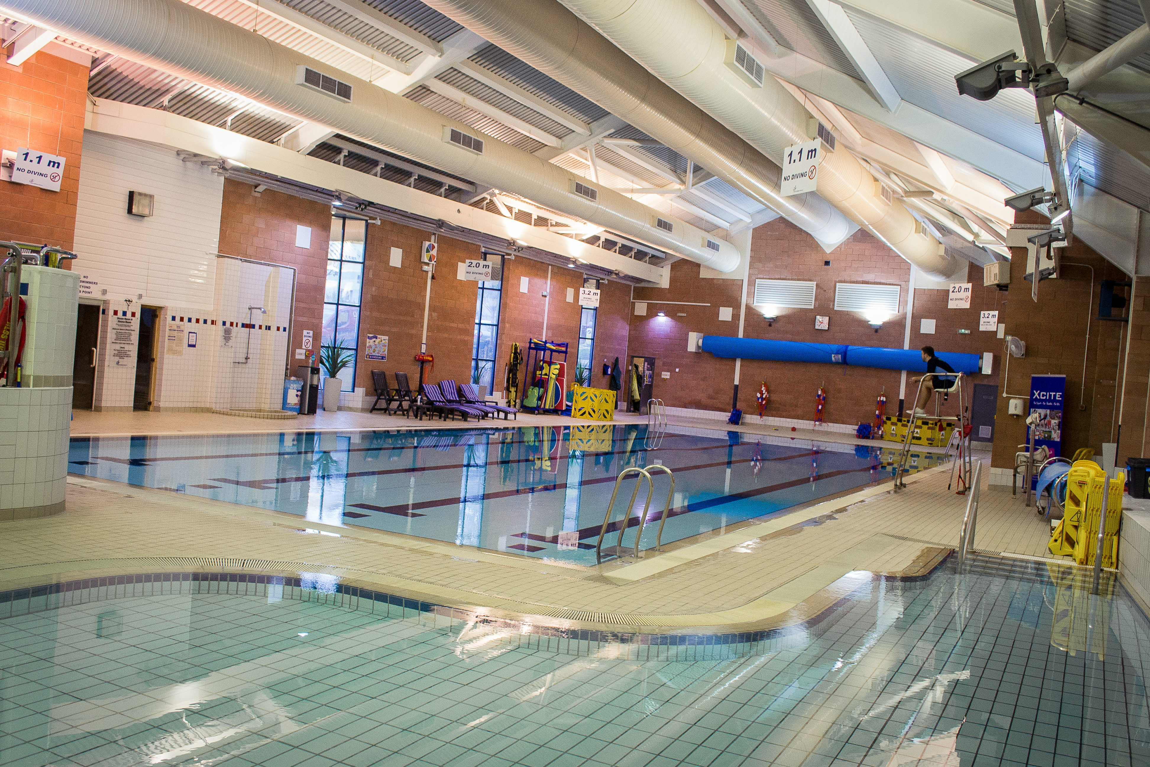 Swimming Pool Child Admission Policy All Children 7 years old and under must be accompanied in the water at Free swimming for under 16yrs on a Friday 13.00-16.00 is not available at Xcite Livingston, but is available at Deans Community High School in Livingston. ... Fetch Content